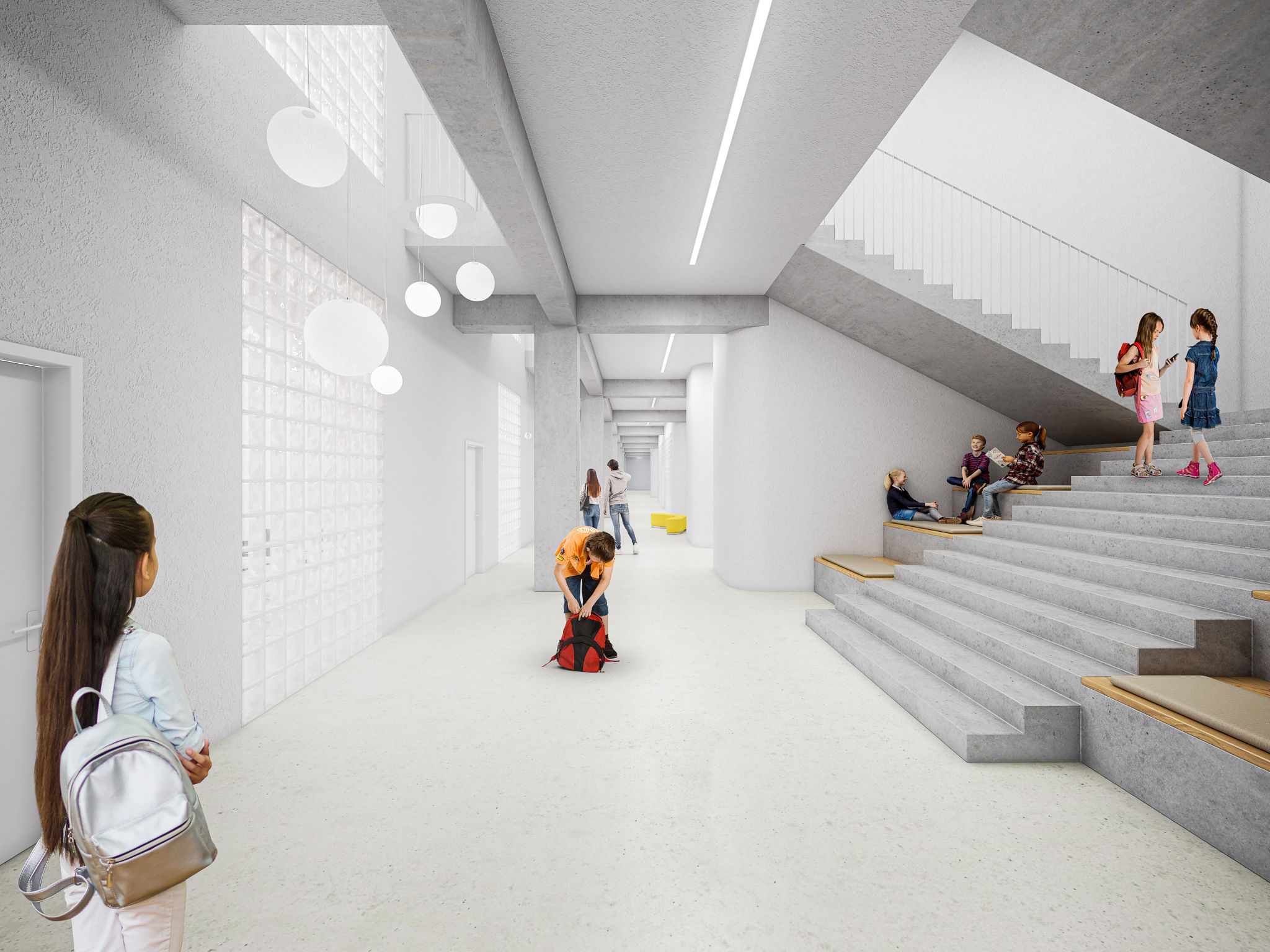 Součástí budovy bude tělocvična umístěná přímo v centru školy a venkovní oplocené hřiště. Stavba nyní pokračuje podle harmonogramu, kolaudace je plánována na červenec 2026.